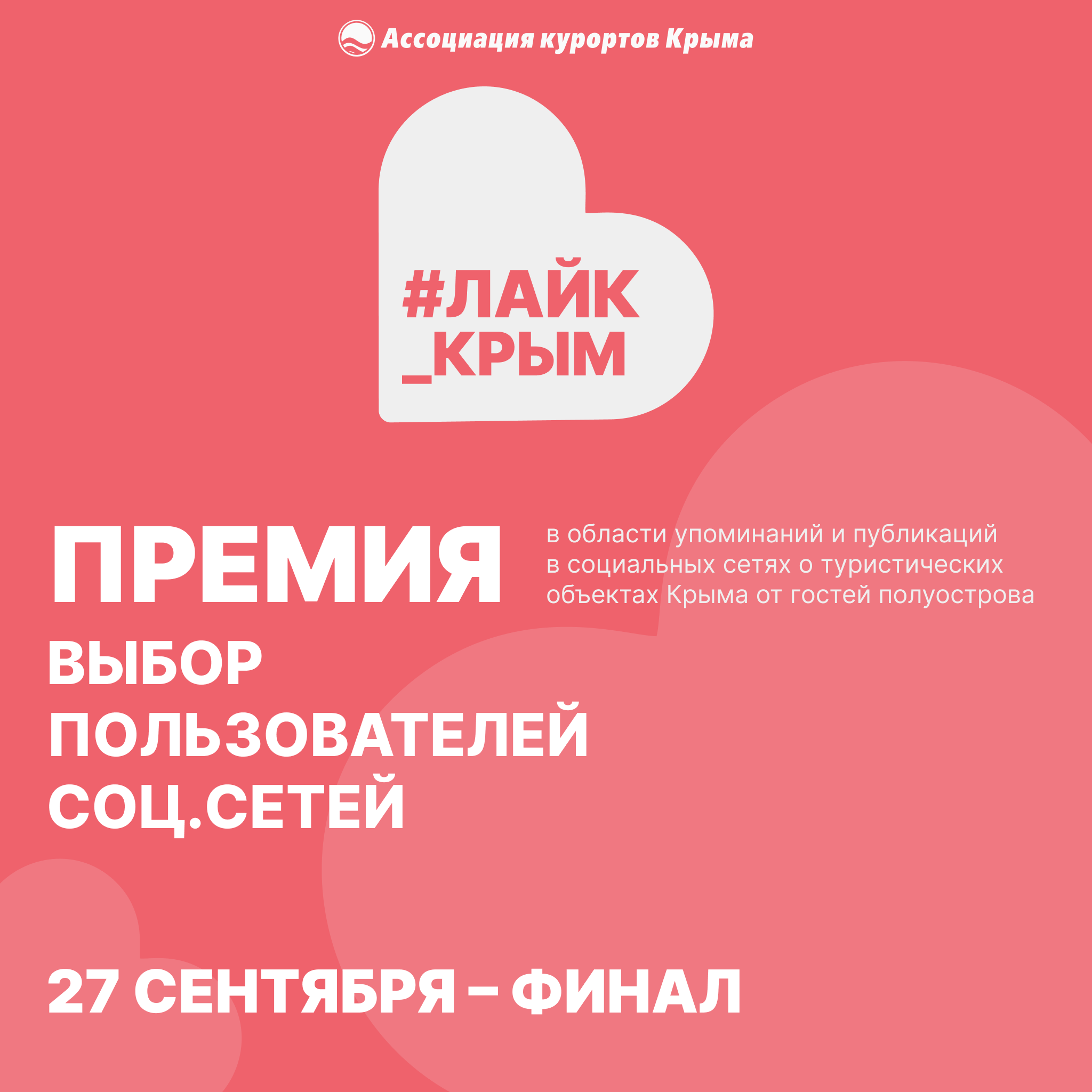 #лайк_крым – это премия в области упоминаний и публикаций в социальных сетях о туристических объектах Крыма. Организовывает и проводит ее Ассоциация курортов Крыма. А рейтинг формируете Вы, дорогие гости!